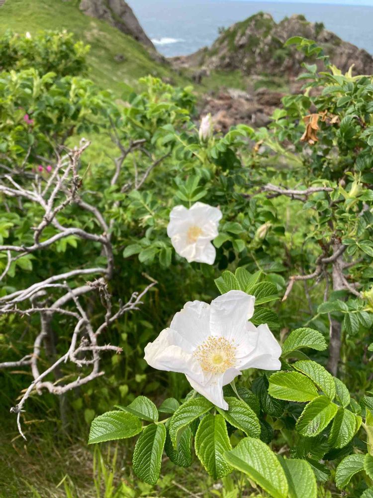 ハマナスは赤いものだと思っていました。白い花を見つけ、嬉しくなりました。強い海風に晒されても茶色くなっていない、真っ白な花は、ほんの僅かです。