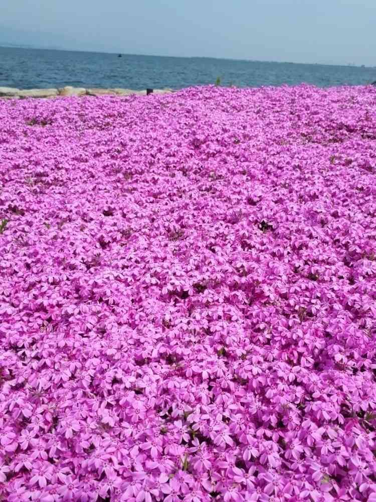 シバザクラが、湖岸沿いの歩道を彩っていて、とても良い臭いがしていました😊