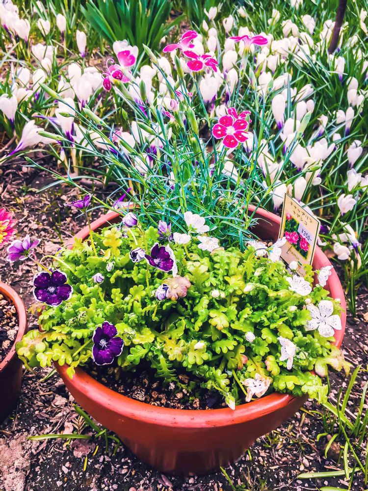 近くの園芸館で買ったネモフィラちゃんとチャップリンナデシコさんと、庭にいつの間にか咲いていたクロッカスさんです。