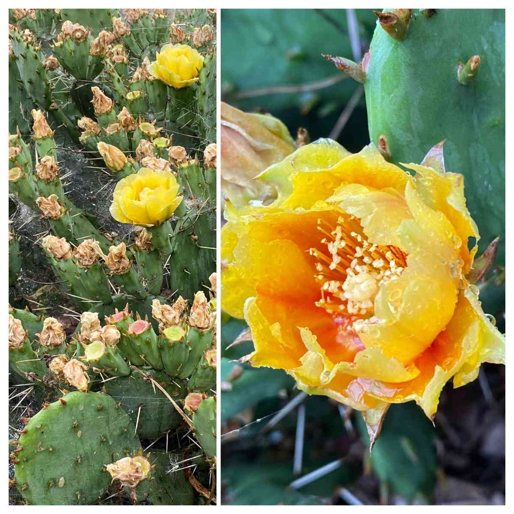 冬の寒さにも耐え、ピカピカの黄色い花を咲かせてくれるウチワサボテン✨ 見ると、パ~っと、気持ちが華やぎます😆🎵