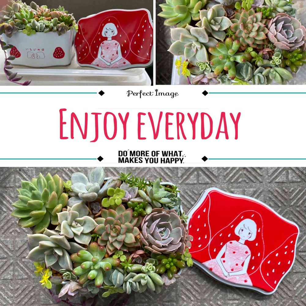 今日は15日や‼️と朝からいちごの日の缶🍓に寄せ植え😍何か色々と寄せてみたけど、イマイチの出来です😅
