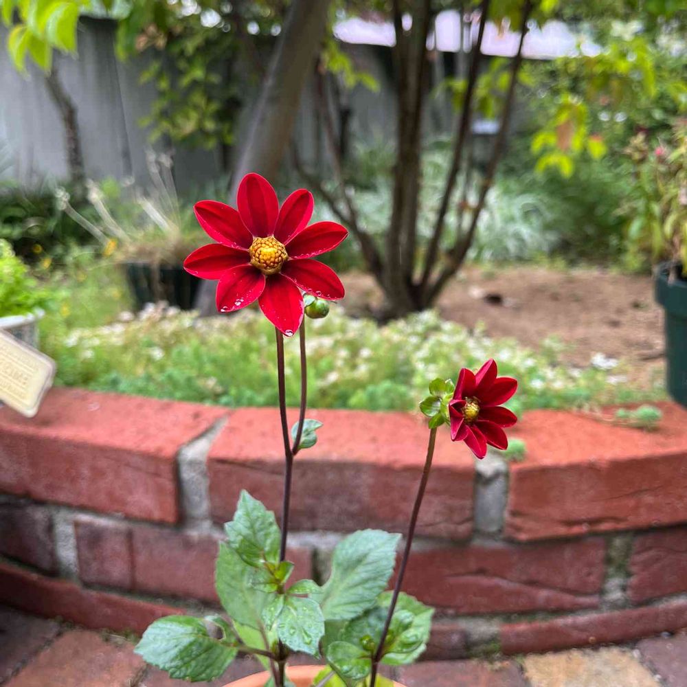昨年寄せ植えしていたダリアさん、水やりが多くなり ダメになりそうなので おひとり様に植え替えしましたが 調子が悪く 枯らしたかなぁ…と思いつつ 軒下に…