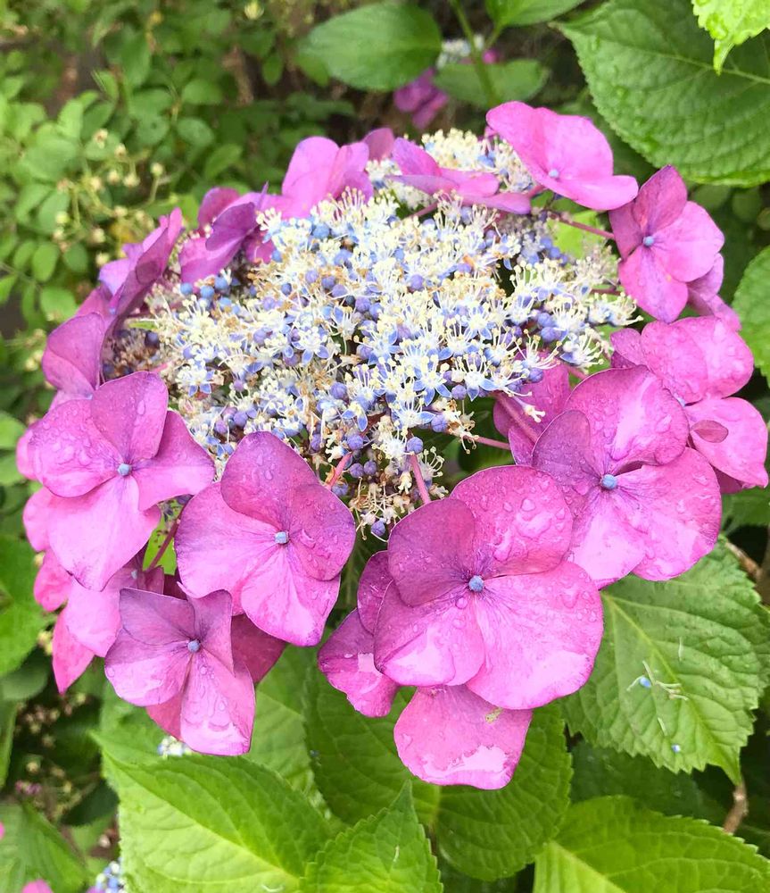 雨上がりに、綺麗な色の額紫陽花🌸に出会いました