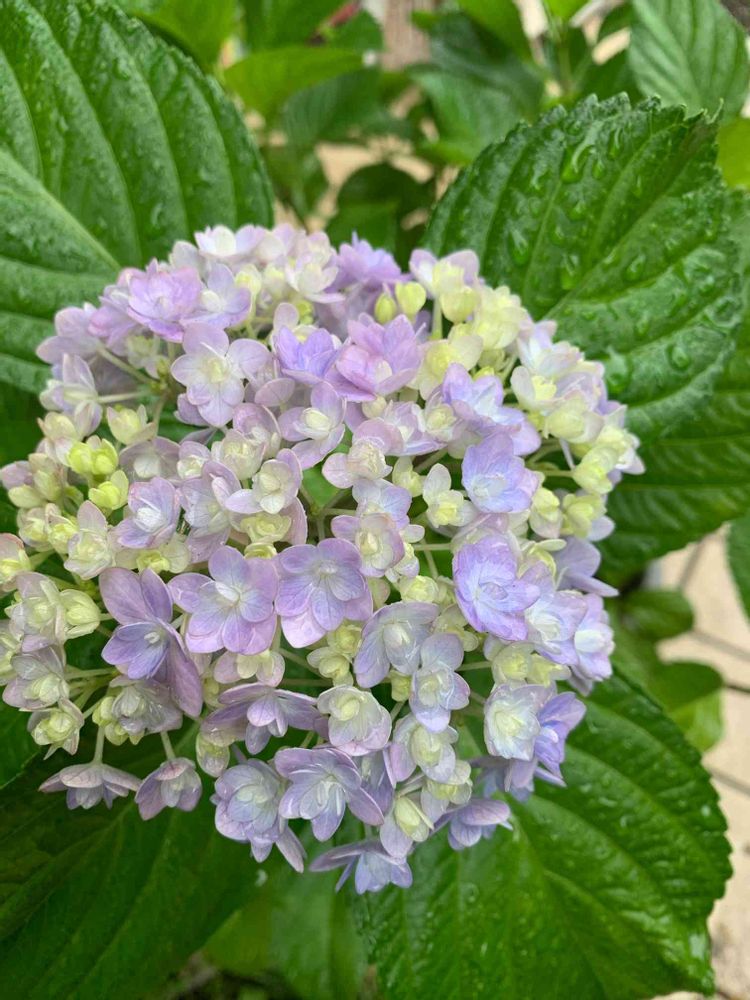 あじさいが一鉢でいろいな色で咲いて癒されます〜🥰