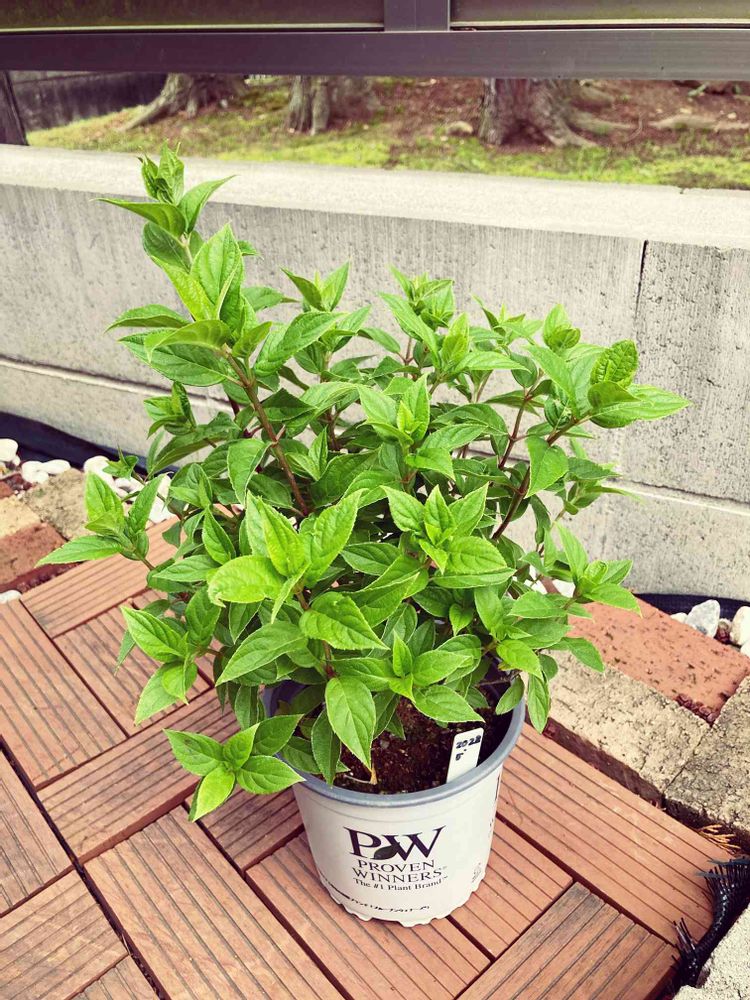 PWのInstagramを見て、小さなアナベルが可愛らしくて育ててみたかったんだけど、もう販売終了してるみたいだったので、雰囲気の似ているノリウツギ・リトルライムを購入。