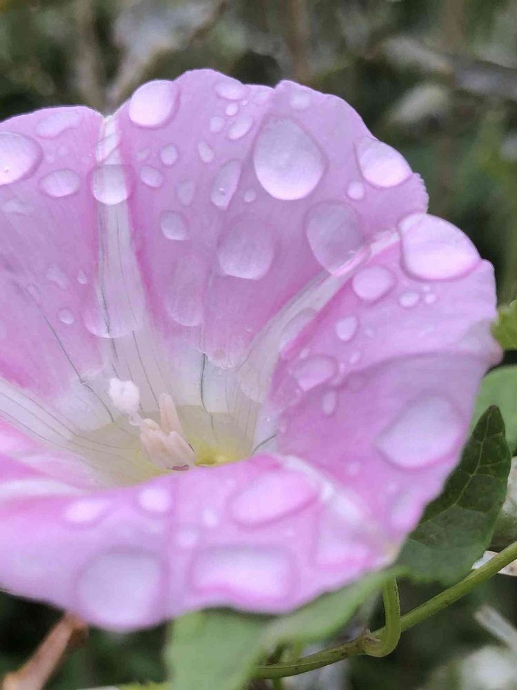 雨上がりの午後、ウォーキング中に粕川の土手で、雨の雫が美しいヒルガオが可愛い、❤️🤗👍🎶