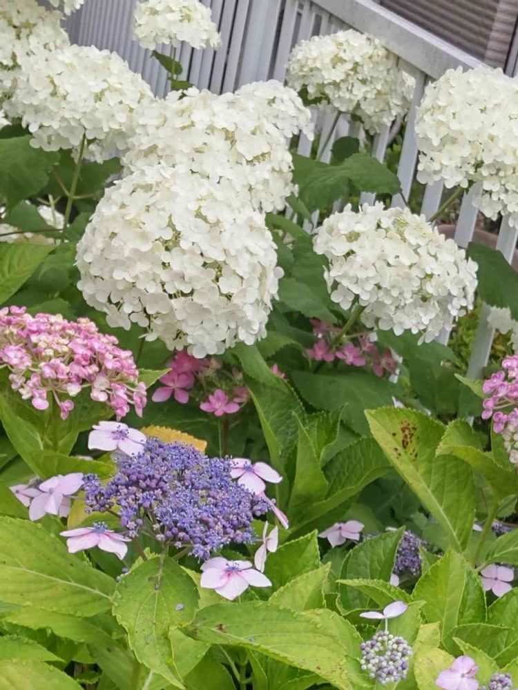挿し木からなので、色々混じってます。昔はヤマアジサイ紅もいたはずなんですけどね~💦