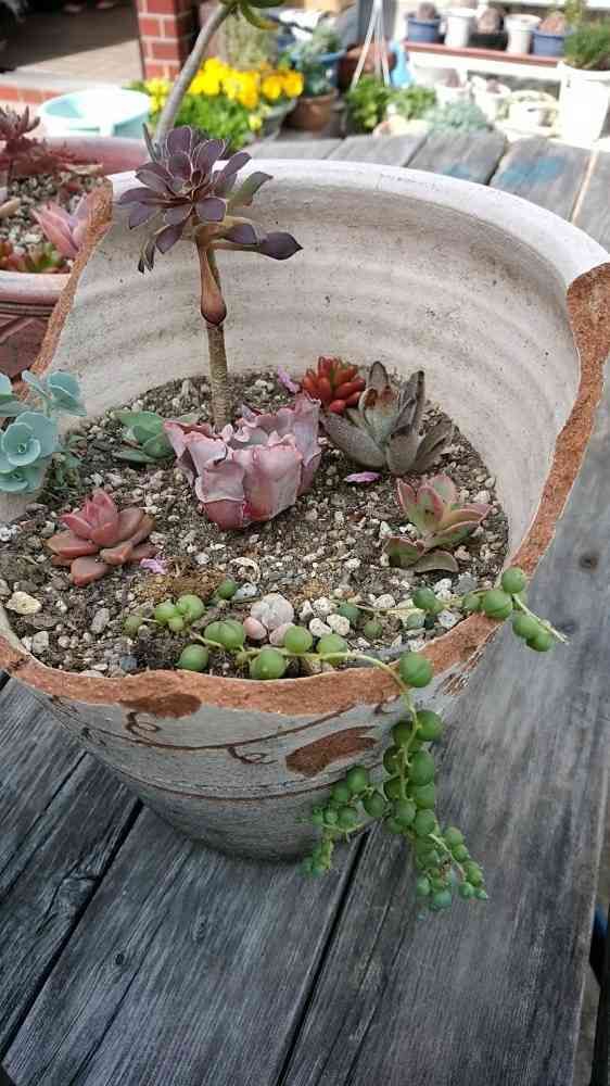 いくつか、割れた鉢があって(落とした訳じゃなく自然に割れた)