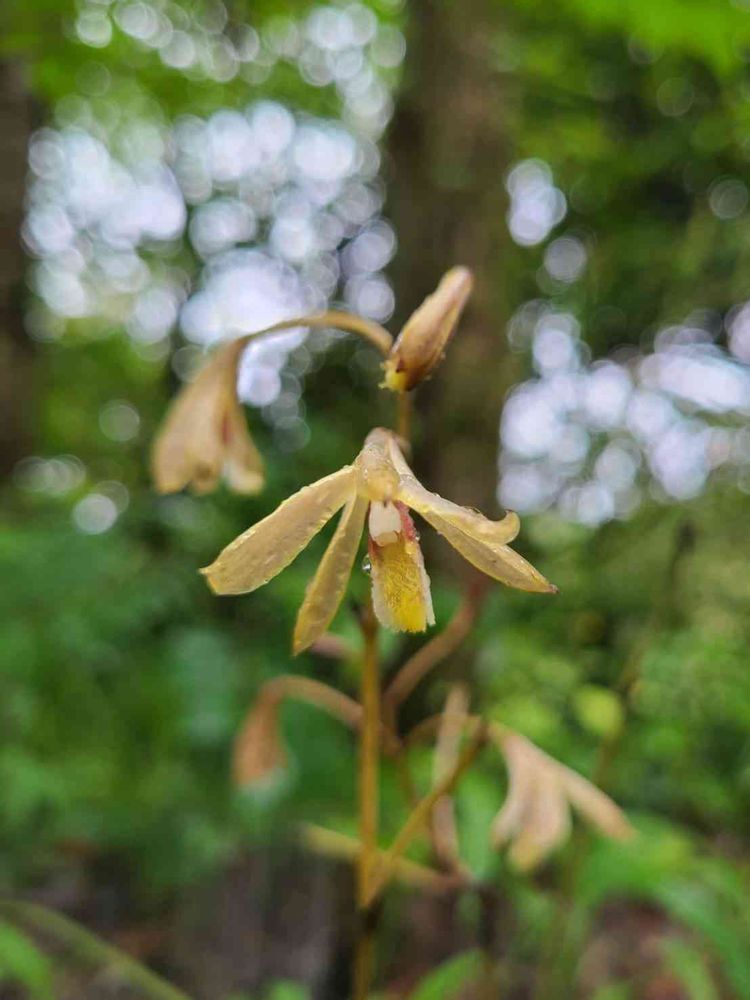 光合成をしない箘従属栄養植物で、葉が無いので無葉蘭となったようです😊