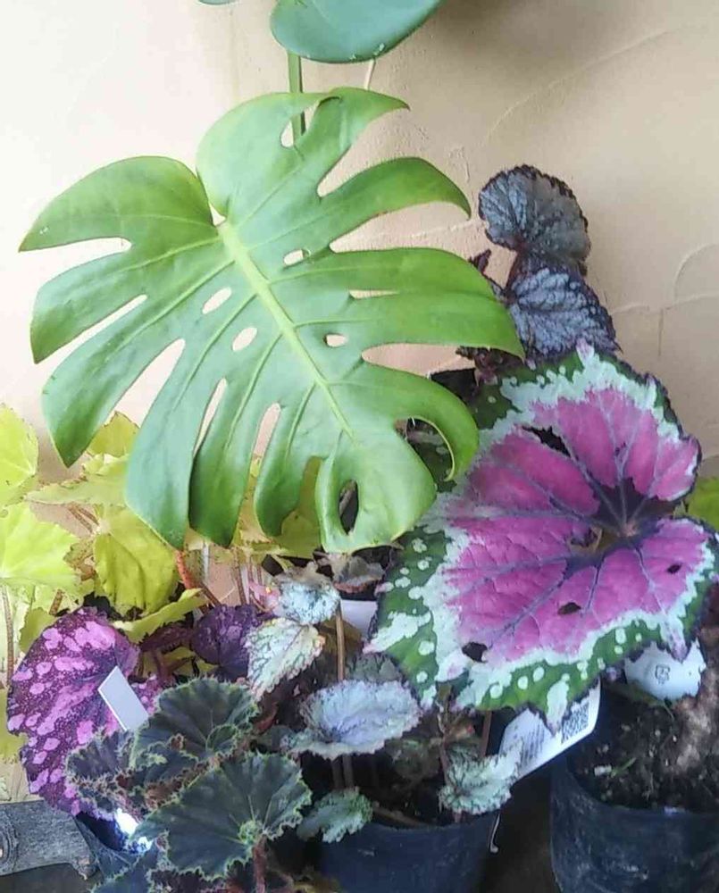 モンステラ、ベコニアの組み合わせが好きで、何ヶ所かそんなコーナーを作っています。