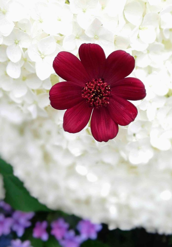 チョコレートコスモスの茎をアナベルの中に入れたら、揺れない‼️とね(笑)