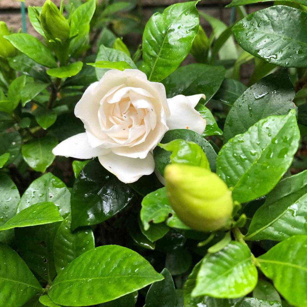 小さな庭,今朝の庭,クチナシ八重の投稿画像