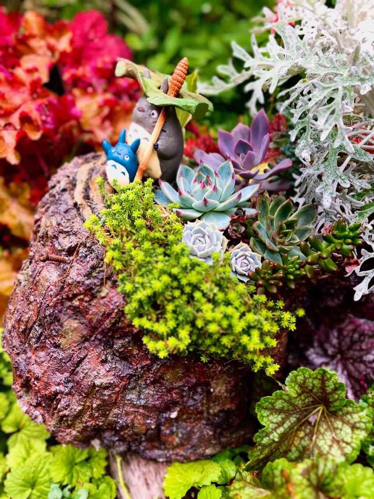 切り株鉢に可愛い寄せ植えとトトロ✨