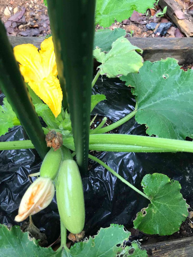昨年、夏に体調を崩してしばらく動けなかったのですが、娘にズッキーニとナスばかり食べてるからだと娘に怒られたので、株数を減らし小さなズッキーニにしました。いつもの半分以下の大きさです。気分的に物足らない🌀