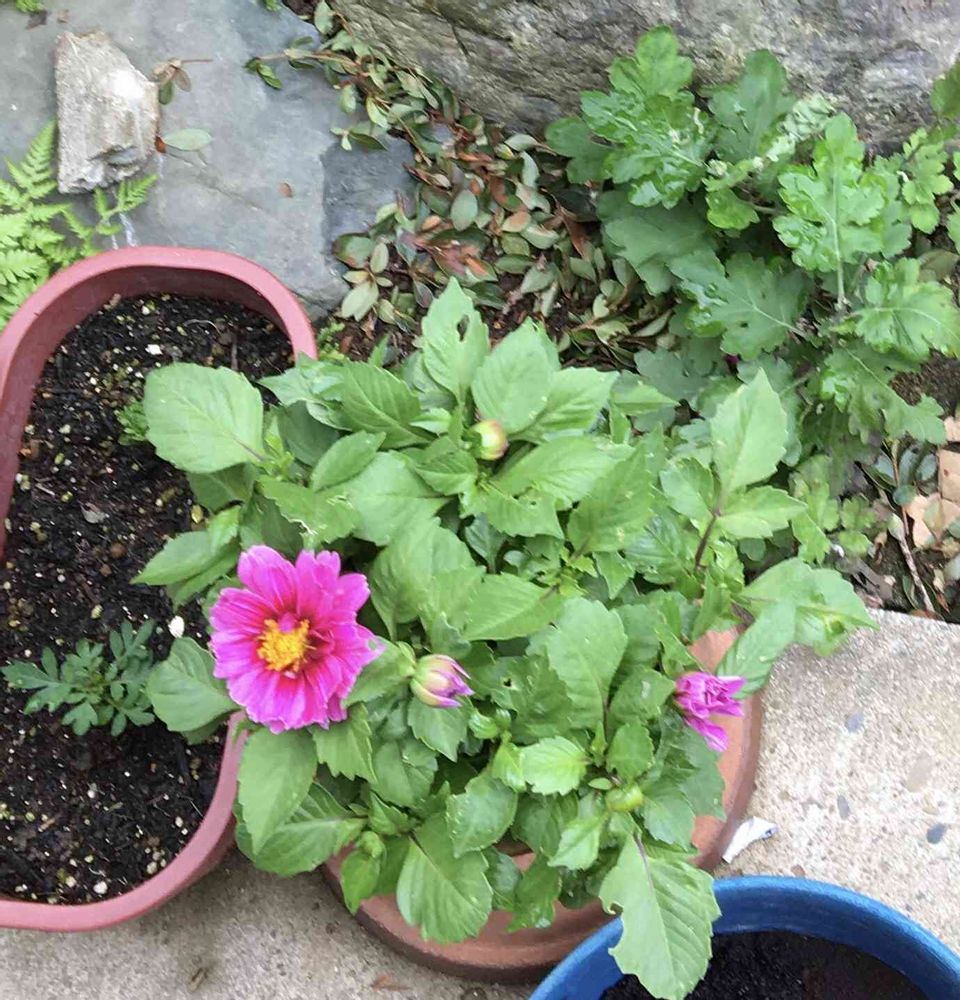 見切り品のダリアを植え替えて、肥料と下葉など不要な葉をかいて世話を焼き1ヶ月。