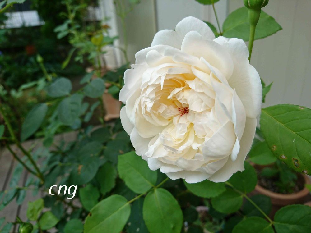 二番花のほうが蕾が多いです。鉢植えは、移動できるので雨にあてないようにして黒星を出にくくしています。