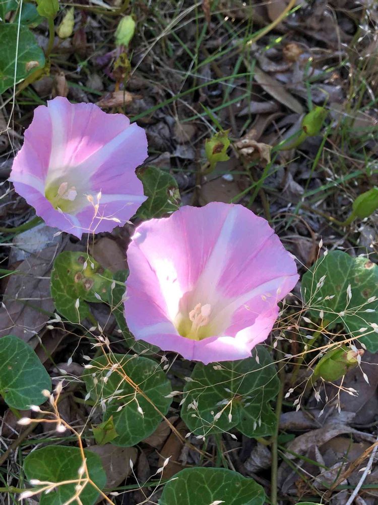 孫と遊びに行く公園にいっぱい咲いているヒルガオ、この時は丁度きれいにまだ、花開いてました〜😊💕