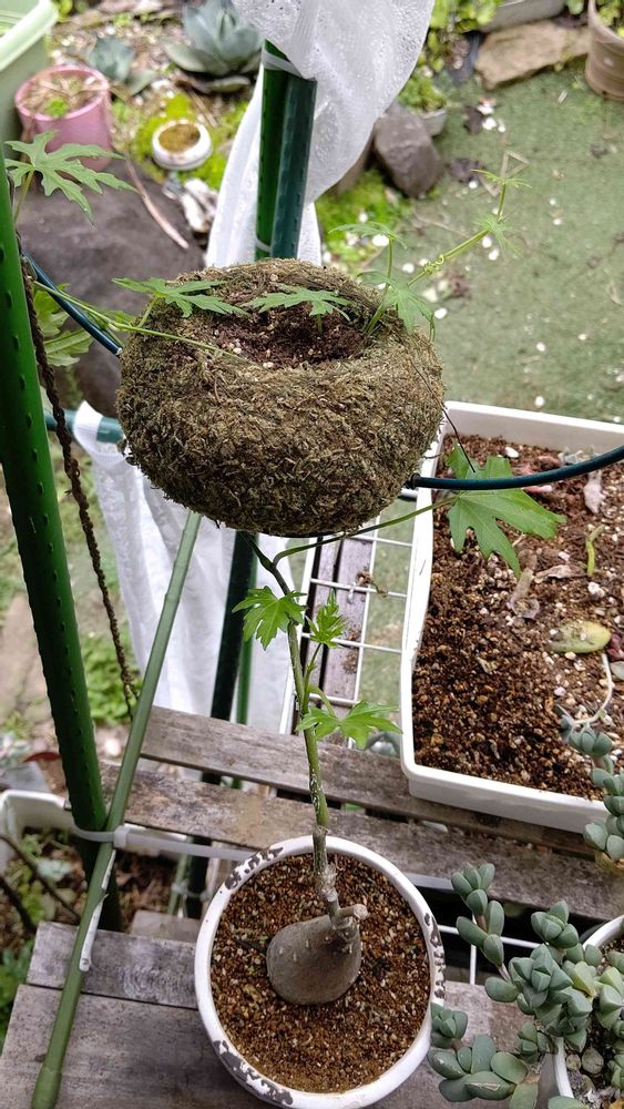 picはシッサスツベロウサ 今年も蔓を伸ばしてくれました。蔓の途中に土が有るとそこに根をおろす珍しい子です。