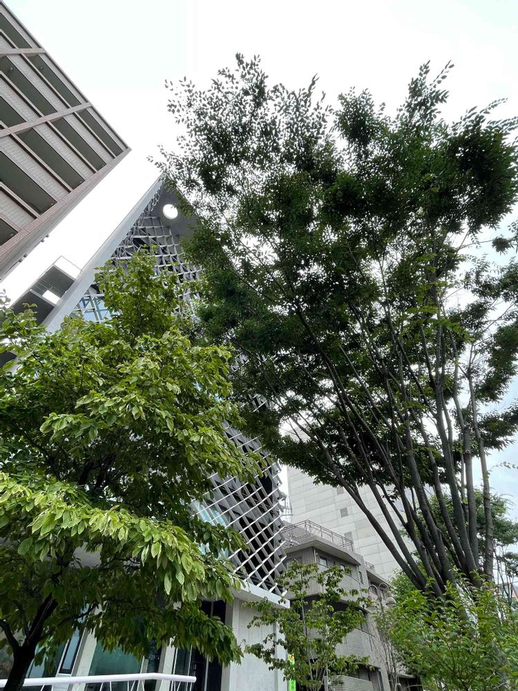 見上げたところはとてもステキなデザインのビル🏙の学校ですね。