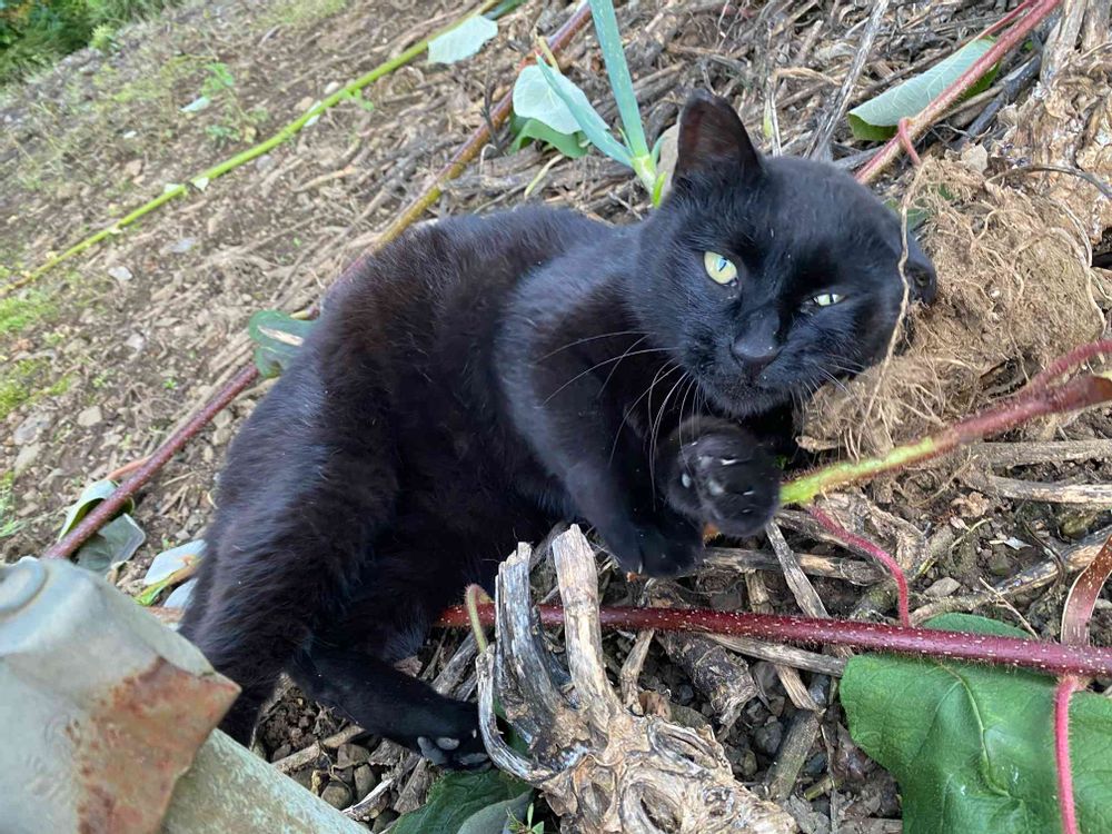 これは、キウイの木の下で嬉しそうにすりすりゴロゴロしていた仲良しの猫🐈⬛