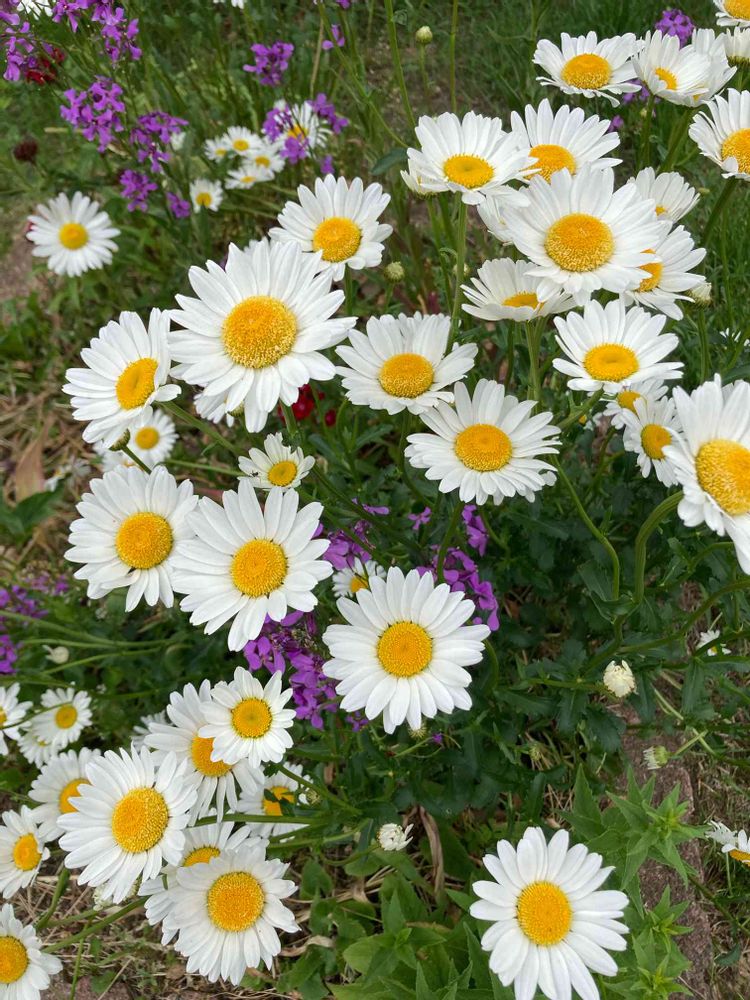 シャスターデイジー🌼とハナダイコン🌸お庭で満開🌸🌸