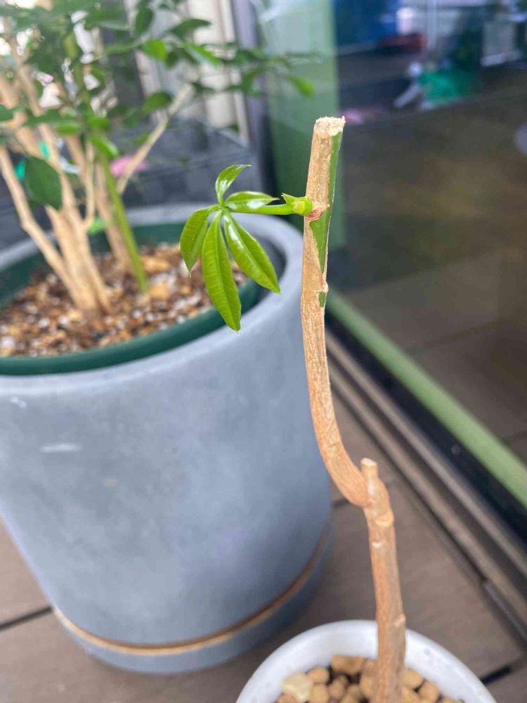 徒長、丸坊主パキラ ピンピンな新芽が出て本当に良かったね!!ここまでくるのに、とんでもなくYouTube見まくりました✨ありがたいです!