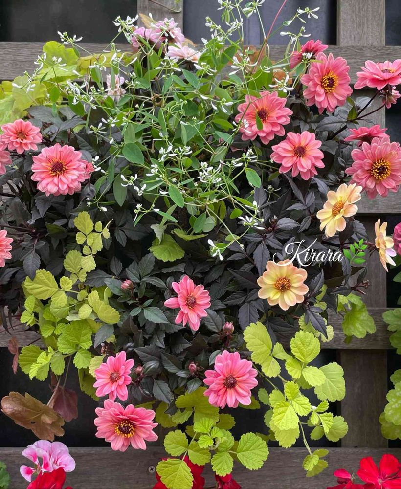 銅葉に惹かれてお迎えしたプチダリア ハミングブロンズのハンギング🌿ライム色のルプスやヒューケラと合わせましたが お日様が恋しいお天気続きなのでやっぱり管理が難しそう(^。^;)花数減らないといいんだけど…♪。.:*