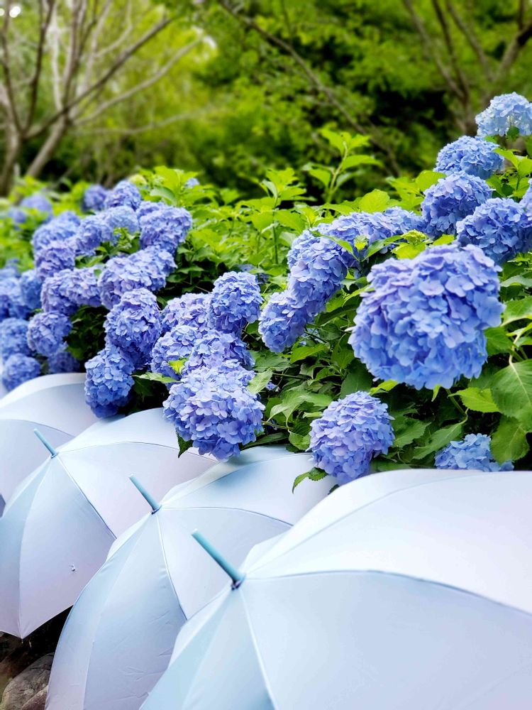 紫陽花と共にブルーの雨傘☂️が延々と続きます😍