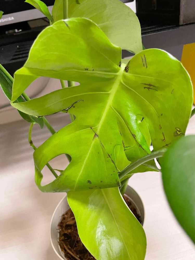 昨日帰ったら、モンステラの鉢が倒れてズタボロになり葉が1枚折れてダメになっていました😭見るも無惨な姿に…😭😭😭
