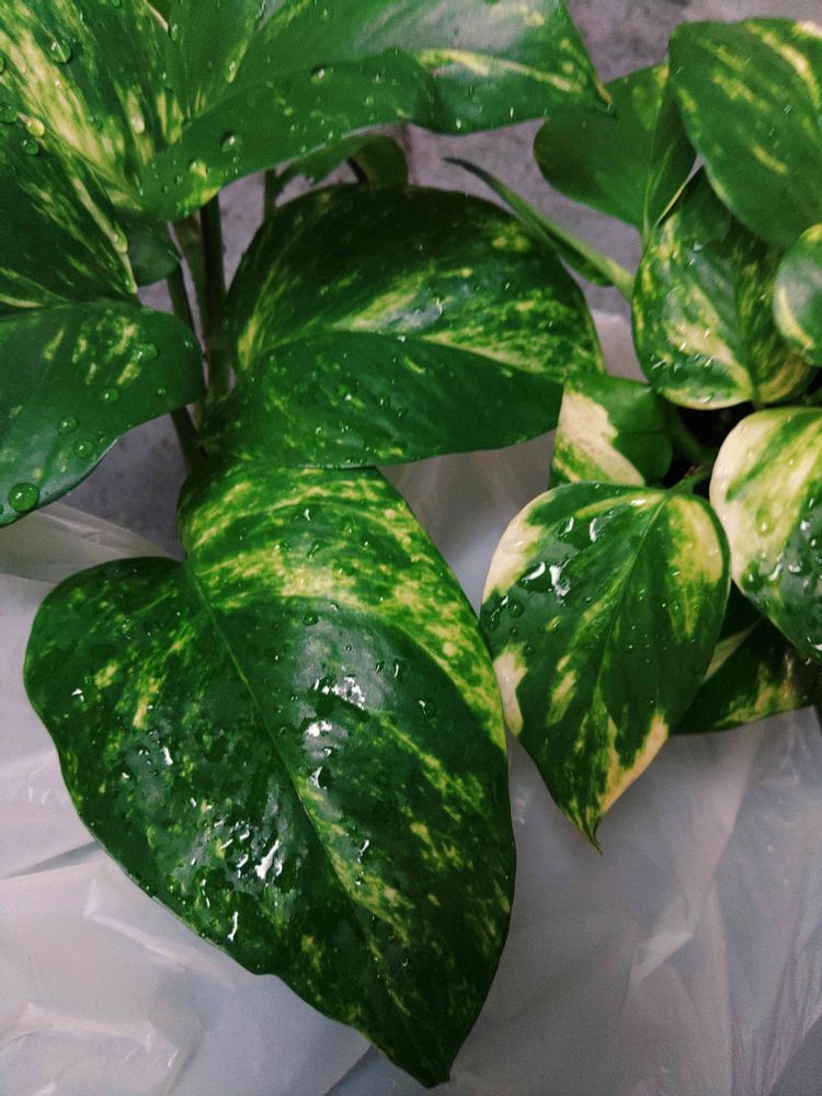 お店の方に「このポトス葉、大きすぎやしませんか⁉️普通のポトスですか?」と聞くと『大きいですよね~✨生産者さんの努力の賜物だと思います💚』と。どんな技を使ったらこんなに大きく立派になるんでしょうか😄❓️思わず2鉢買ってしまいました😁💦