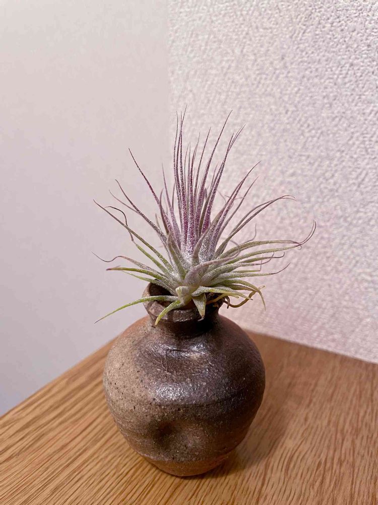 一輪挿しの渋い色にエアプランツの色映えますね(o´艸`)✨✨