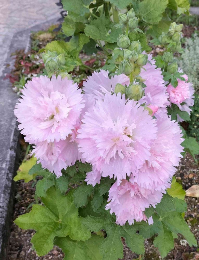 ピンクのアルセア(タチアオイ)も咲いてきました😆✨