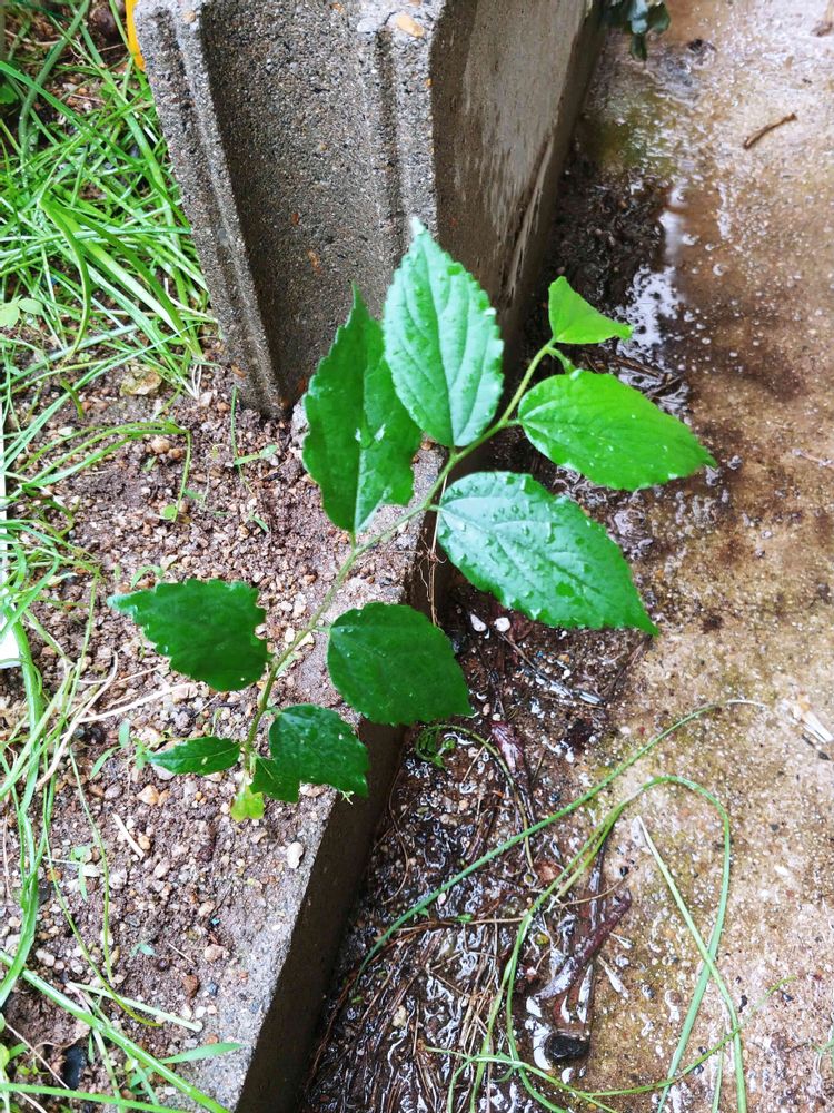 picは小さい花壇の境目に使っているコンクリートブロックの穴から生えてきた子