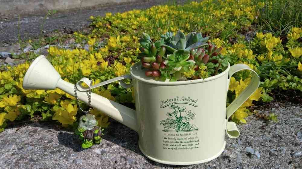 やってみたかったジョーロ寄せとグリーンイグアナのキーホルダーです😆