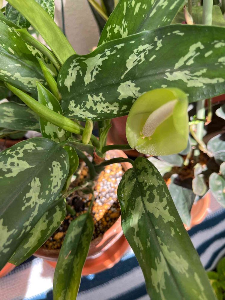 うちのアグラオネマのお花は少し開いて、2-3日で閉じてしまいました😭