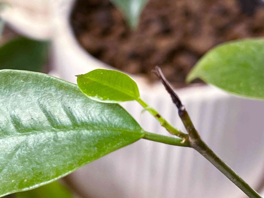 ガジュマル鉢上げから4周目小さい葉っぱ出てきました😊