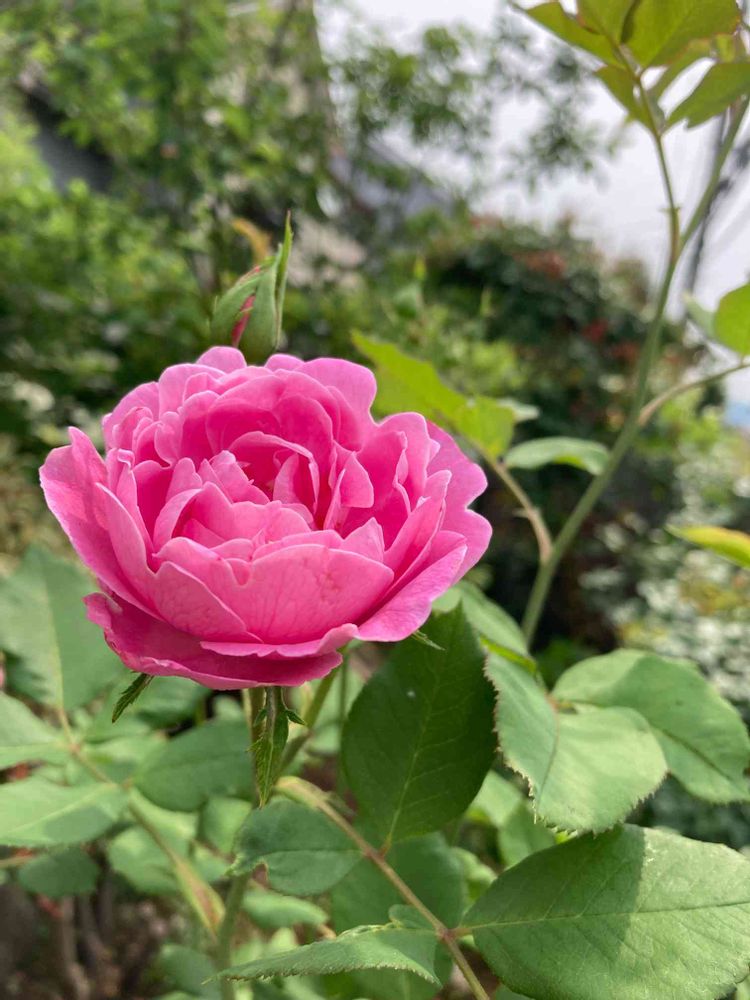 姉妹のマダム・ピエール・オジェもいるのですが(もっと薄いピンクです)、今年は葉が黒点病や黄色になったりで、全然ダメでした😢