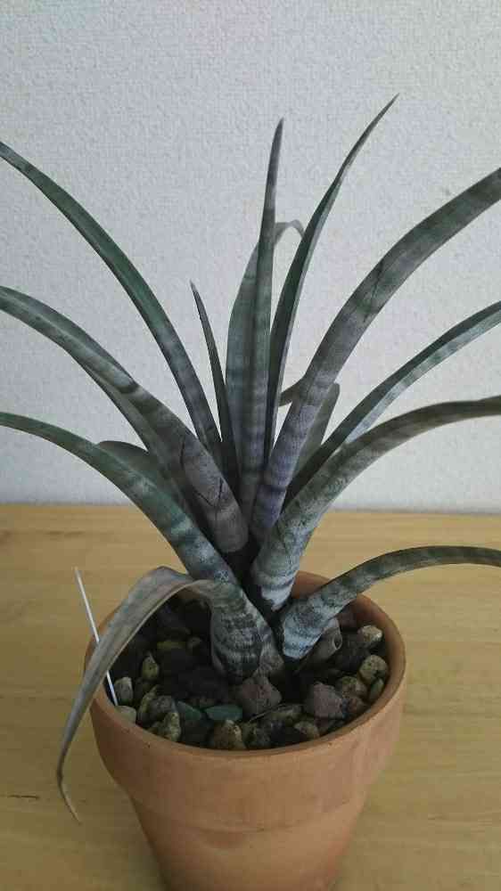 葉の色が緑色に若干の赤銅色が混ざっていて、シマシマ模様とあいまって、不思議さ満点ですね😃。