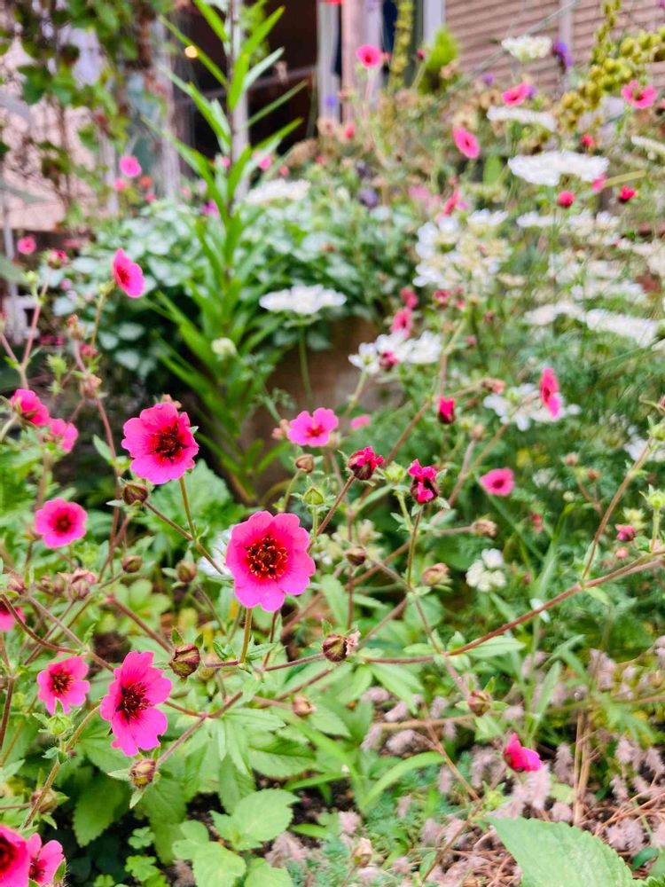 ポテンティラ、かわいいですよー✨強いみたいやし!!うちは白と赤がありますが、白は上に伸びて大きくなる感じで、赤は横に広がって上に伸びる感じでスペース広めです。←説明が下手笑
