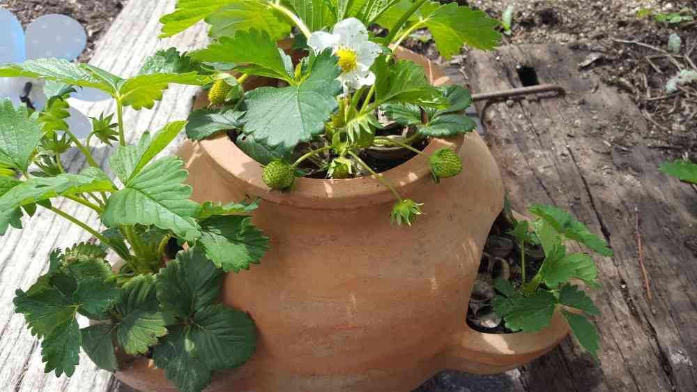 イチゴポットのイチゴ🍓が今年はいっぱい成りました♡早く赤くならないかな🎵