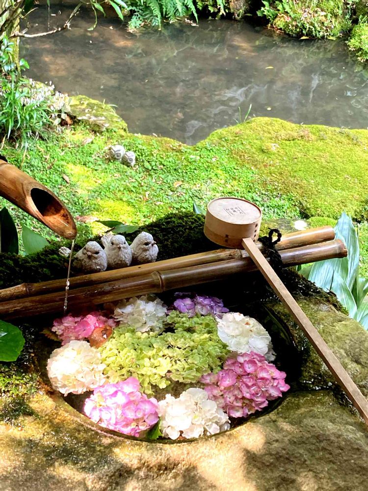 紫陽花寺と言うだけあって、何箇所もある花手水は、紫陽花だらけだったよ〜✨✨