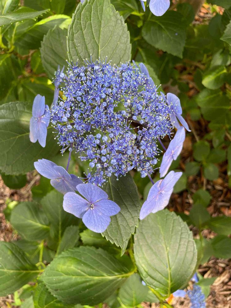 私は、青いガクアジサイで、雄しべが金色に見えるお花を「満天の星空」と名付けたんです。