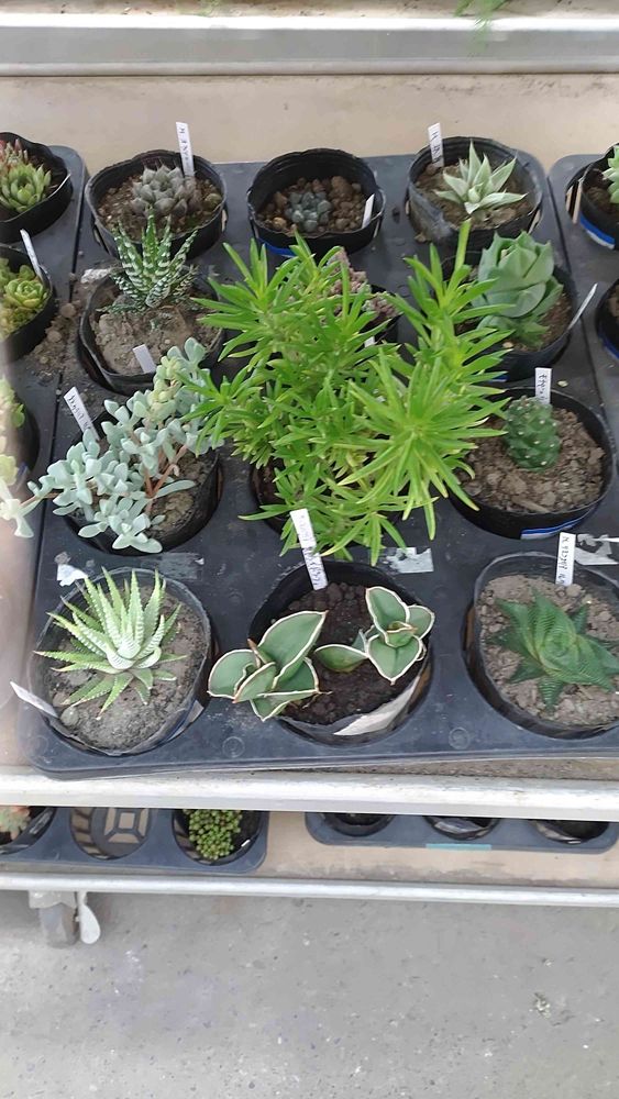 ここもハオとサンスベリア。左奥はおそらく紫オブツーサですね。サンスは他にも少しありました。