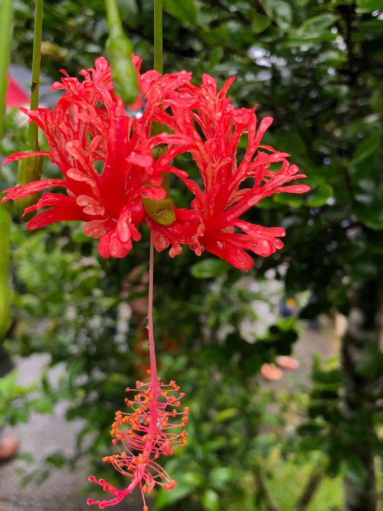ハイビスカスの原種で、風に揺れる姿が風鈴のような風情があることから名付けられたようですが、その真っ赤な姿は燃え上がる炎❤️🔥にも見えますネ❣️