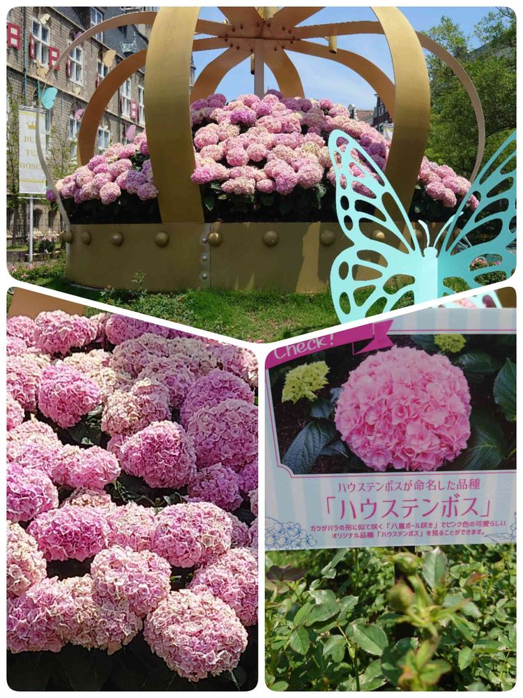 園内には、ハウステンボスと名付けられた、ピンクのあじさいが咲いています🎵