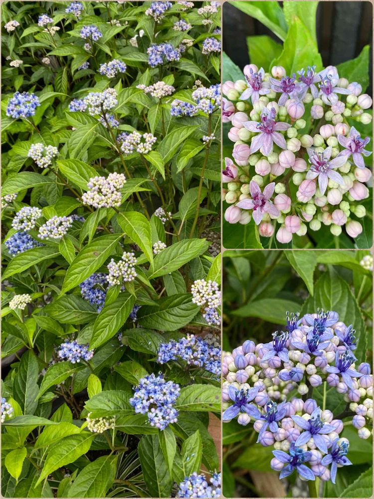 紫陽花の上部はあのブルーのお花…根元付近に目をやるとピンクのお花が2つ咲いているの🤯🤯🤯