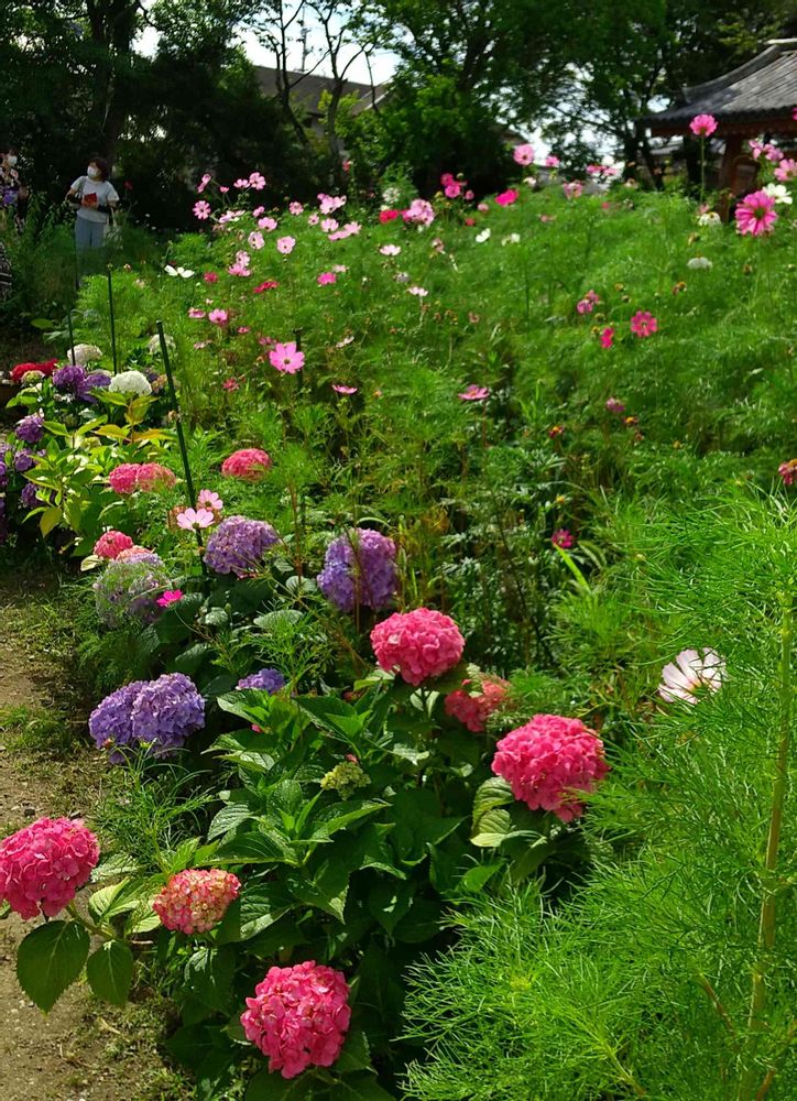 コスモスと紫陽花が満開でした(コスモス寺とも呼ばれている)。