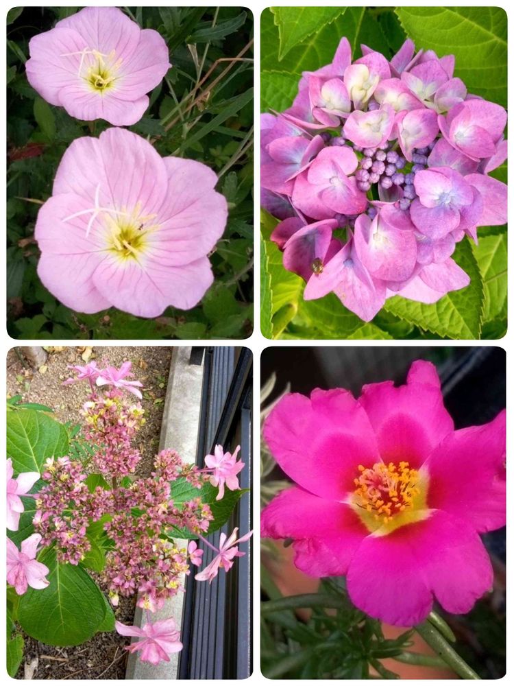 左上↖️(ツキミソウ)(月見草) 右上↗️(アジサイ)(紫陽花)(あじさい)