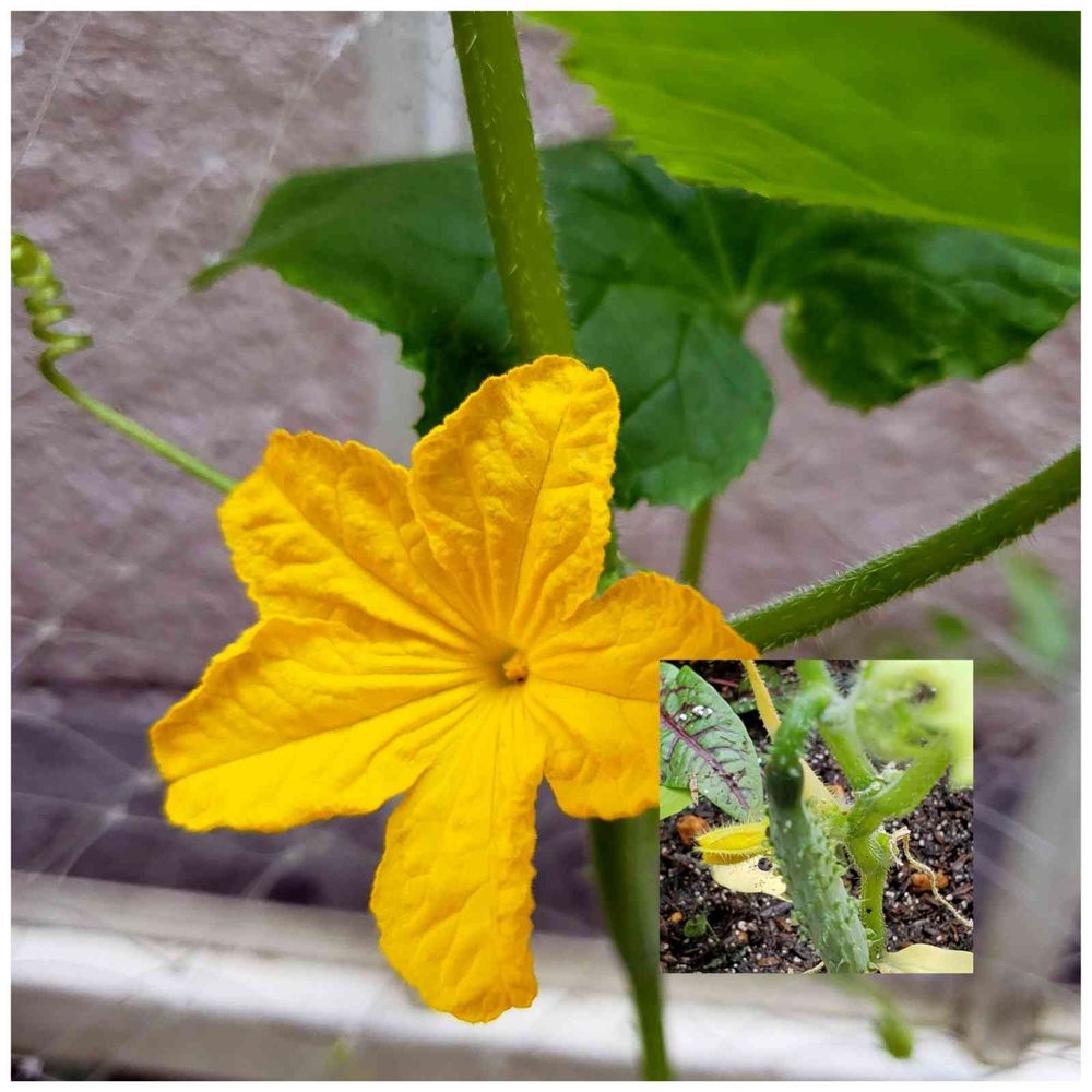 🌱キュウリも花が咲いて、小さな実をつけました💖