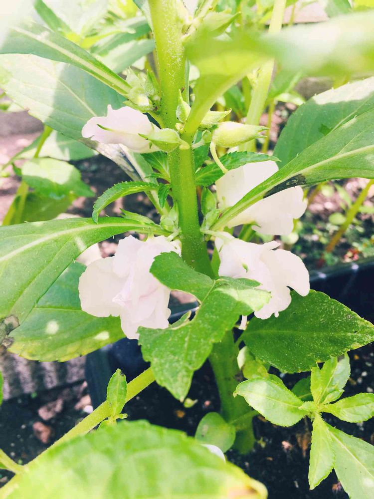 二代目鳳仙花の白が咲き始めました。